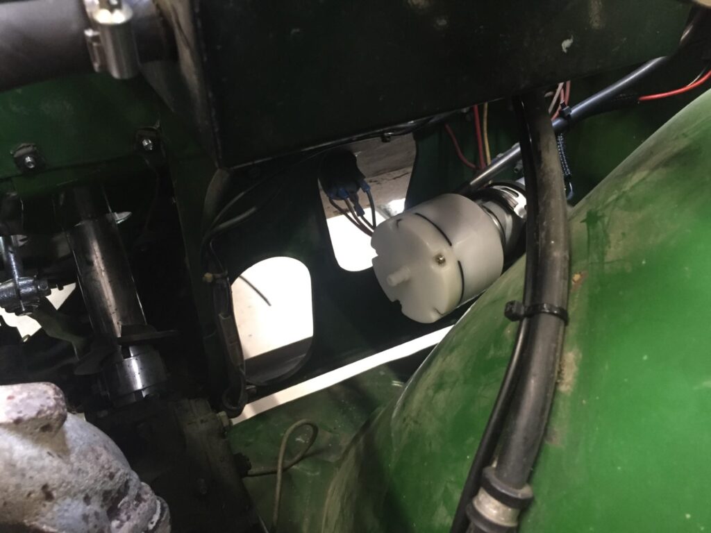Weil die HARDI Pumpe nur pumpt und kein Vakuum wie die alte mechanische Pumpe erzeugt, muss Airsatz her. Sonst wischen die Scheibenwischer nicht. Irgendwo bei einem Chinesischen Multimilliardär haben wir dann für nen Kaffee eine solche Vakuumpumpe gekauft. Im Nachhinein würde ich etwas mehr Geld dafür ausgeben, das Teil sieht mir nicht Offroad-tauglich aus.