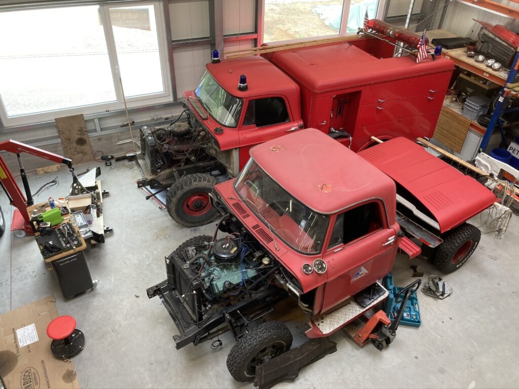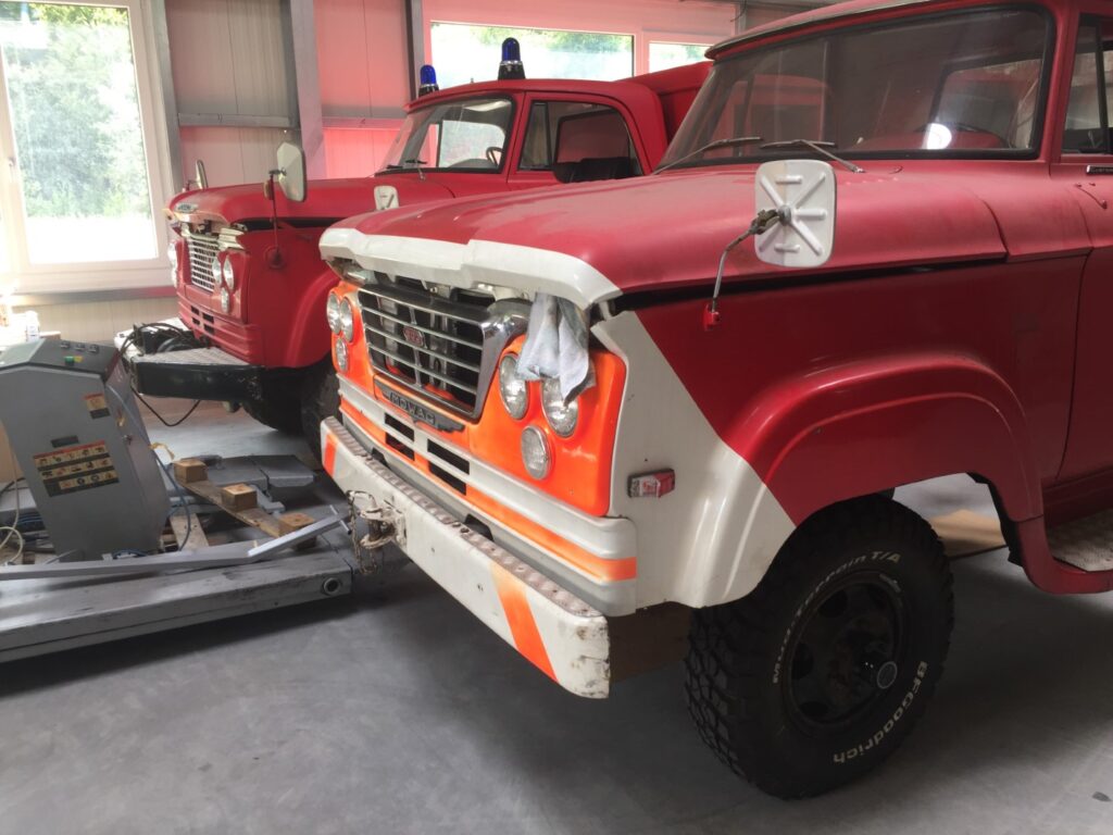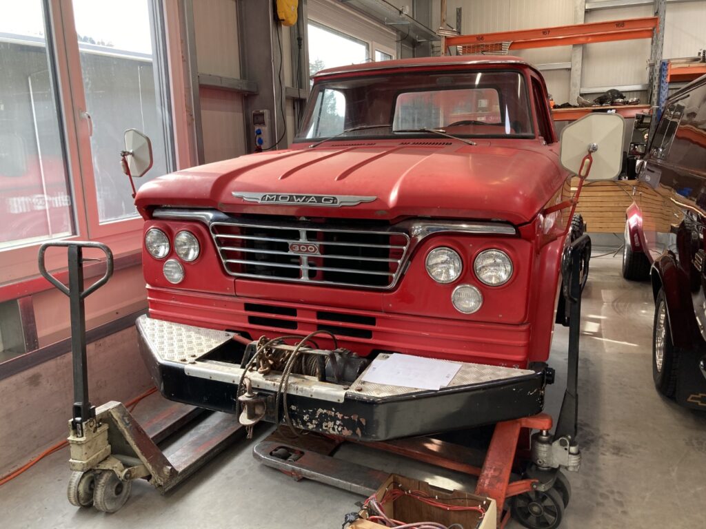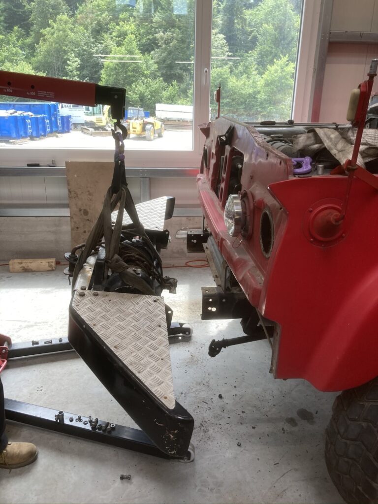 Die Orange-Weisse Lackierung an der Schnauze hat mir noch nie 100% gefallen. Zum Glück ist der Ersatzteilewagen ganz in Rot gehalten. Die Front nehm ich mir. Und die gröbere Stossstange mit Seilwinde sowieso!