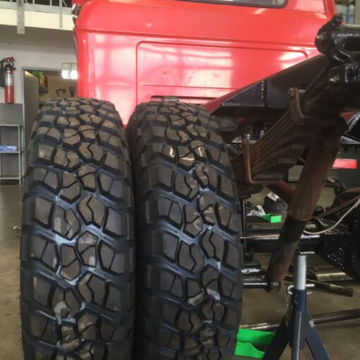 Wegen dem Blattfedern-Ausschnitt hingen die Kotflügel dann ein wenig runter. Stabilität ade. Habe die da dann einfach mit einer Kette am Boden des Aufbaus befestigt.